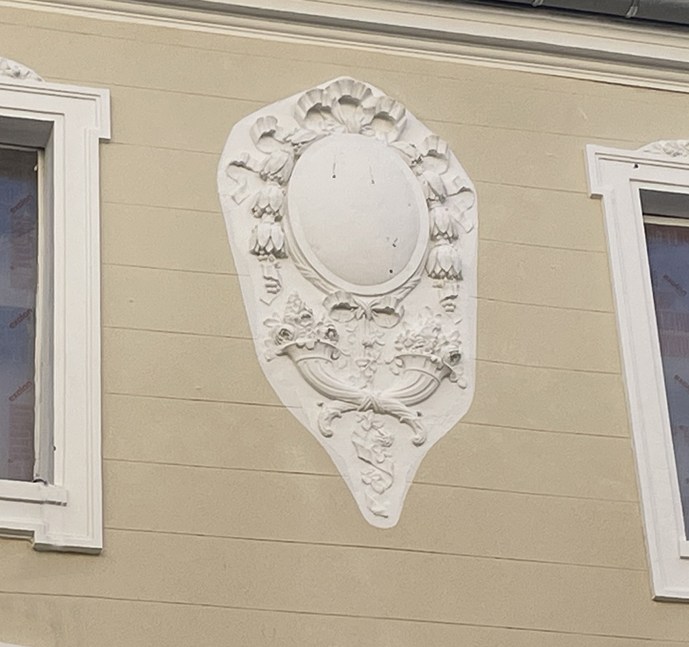 Motif ornemental et corniche d’un bâtiment, rue du Tan à Meaux